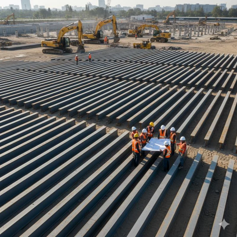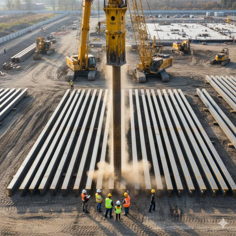 A versatilidade e eficiência da cravação de perfil metálico a tornam uma escolha frequente em projetos de engenharia civil de grande porte.