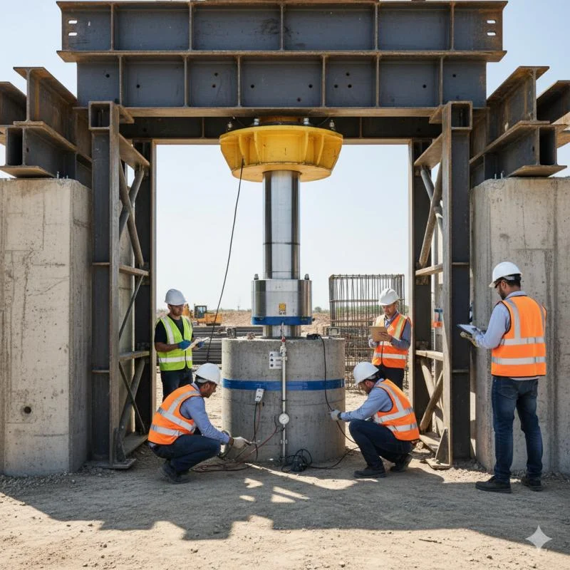 A prova de carga estática em placa é um ensaio fundamental para verificar a capacidade de suporte do terreno em fundações rasas, como blocos ou sapatas.